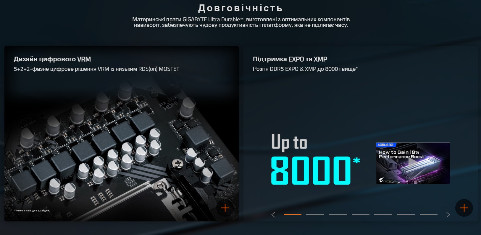 Розширені радіатори на VRM та M.2 забезпечують стабільну роботу навіть при високих навантаженнях.