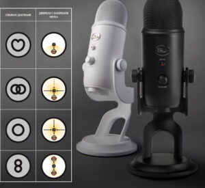 Інноваційний потрійний капсуль мікрофону Blue Yeti дозволяє записати звук в наступних режимах: стерео, кардіоїдний, всеспрямований або двуноправленный (вісімка)