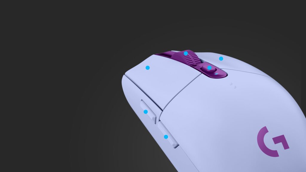 Основні перемикачі G305, як лівий, так і правий, розраховані на 10 мільйонів натискань. Також є кнопка середнього кліку, кнопка зміни DPI та дві бічні кнопки, які можна налаштувати за допомогою Logitech G HUB.