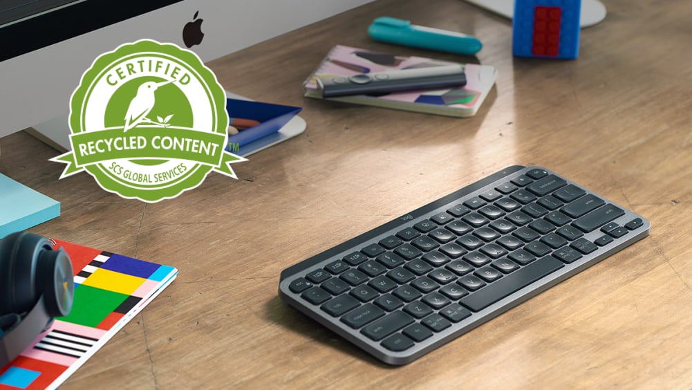 Пластикові деталі в MX Keys Mini for Business містять перероблений пластик — 30% для Graphite і 12% для Pale Grey — щоб дати друге життя використаному пластику зі старої побутової електроніки та допомогти зменшити наш вуглецевий слід