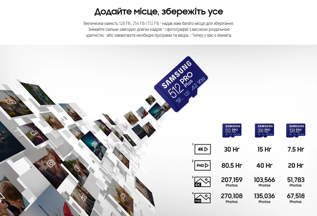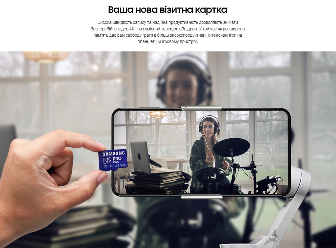 Для Вашого життя, повного пригод. Висока швидкість запису та надійні показники дозволяють знімати бездоганні відео як 4K на телефон або дрон. Розширте місце зберігання на пристрої, що використовується для гри, або на планшеті, щоб грати в вимогливі ресурси. Отримайте швидкість та ємність, які дозволяють завжди залишатися мобільними, незалежно від можливостей пристрою.