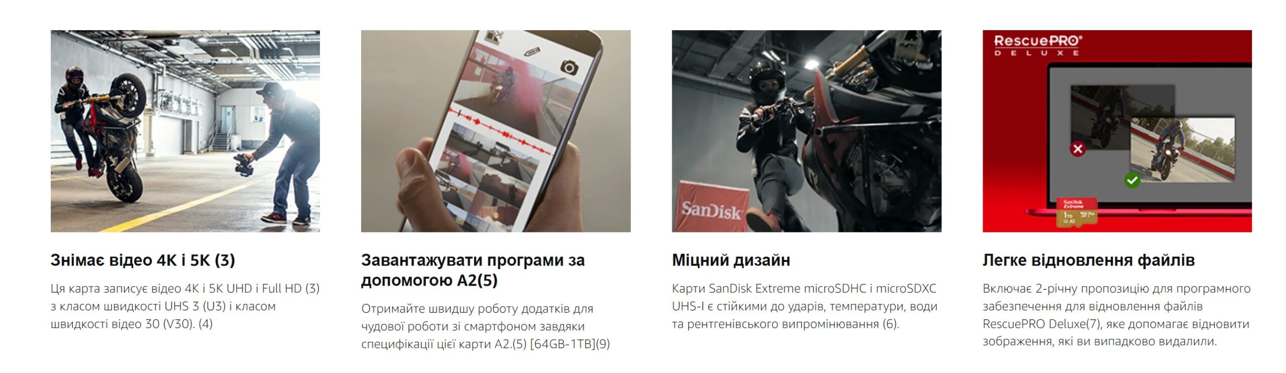 рейтинг продуктивностіЗнімайте і швидше знімайте з C10, U3, V30, 4K, 5K, а завантажуйте програми швидше з A2 |