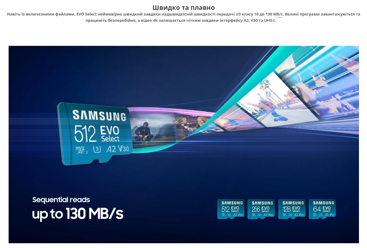 рейтинг продуктивностіЗнімайте і швидше знімайте з C10, U3 і V30, а завантажуйте програми швидше з A2 |