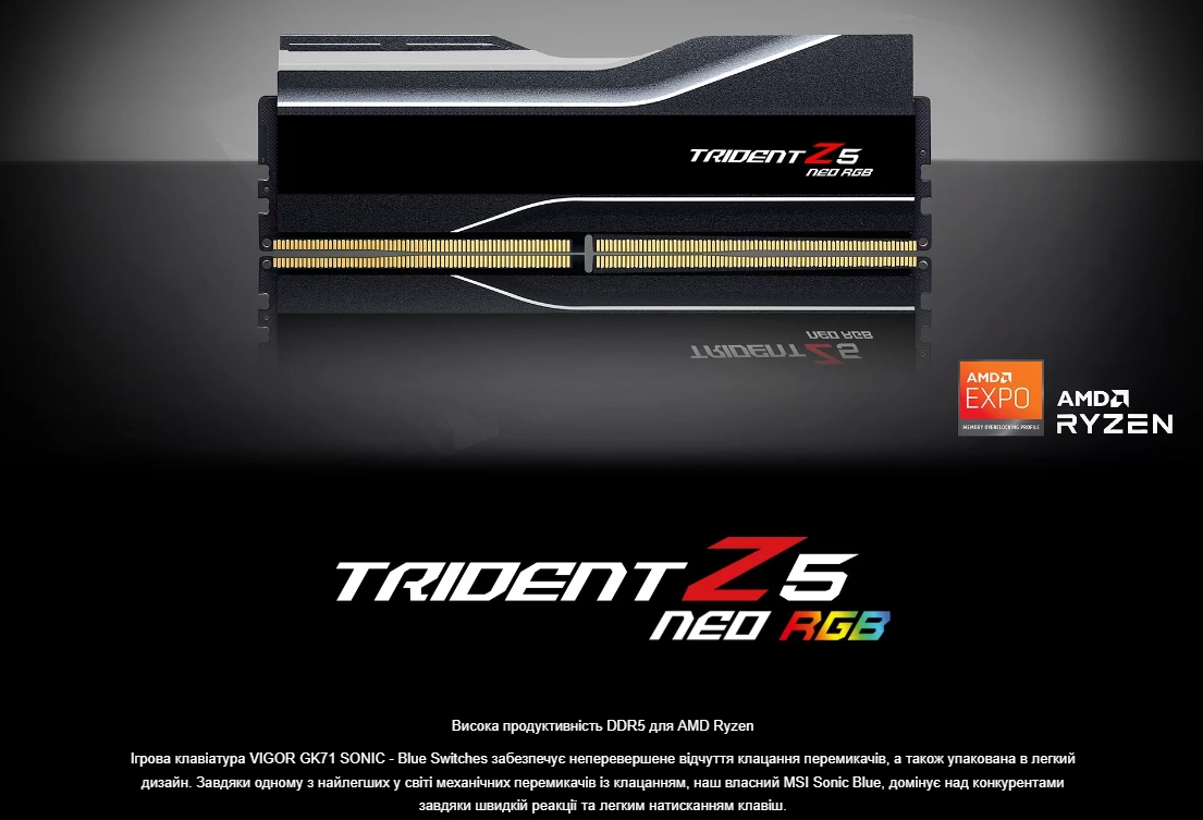 Пам’ять DDR5 серії Trident Z5 NEO RGB – це найновіші флагманські комплекти пам’яті G.SKILL, призначені для надвисокої екстремальної продуктивності на платформах нового покоління DDR5. Завдяки більш гладкій та обтічній конструкції алюмінієвого радіатора, доступного в сріблястому металевому або чорному матовому кольорі, пам’ять Trident Z5 RGB NEO серії DDR5 є ідеальним вибором для геймерів, оверклокерів, творців контенту та ентузіастів для побудови високопродуктивних систем.