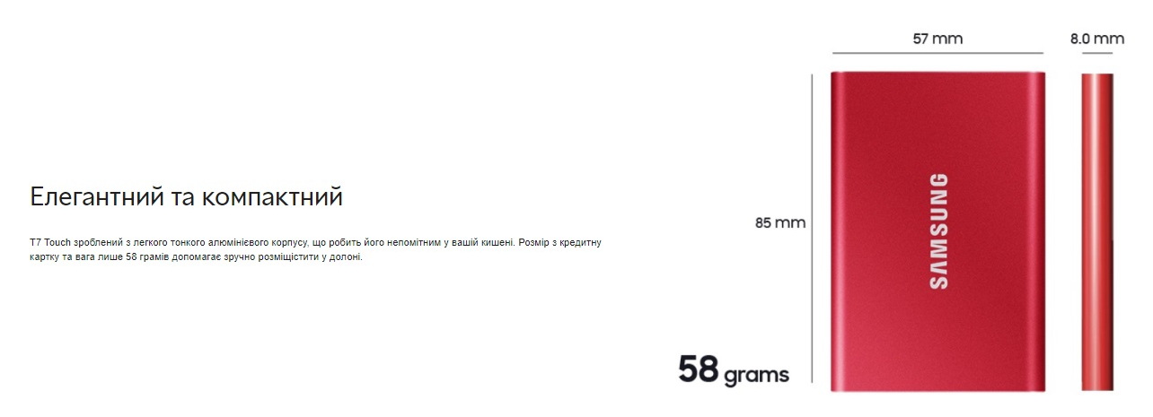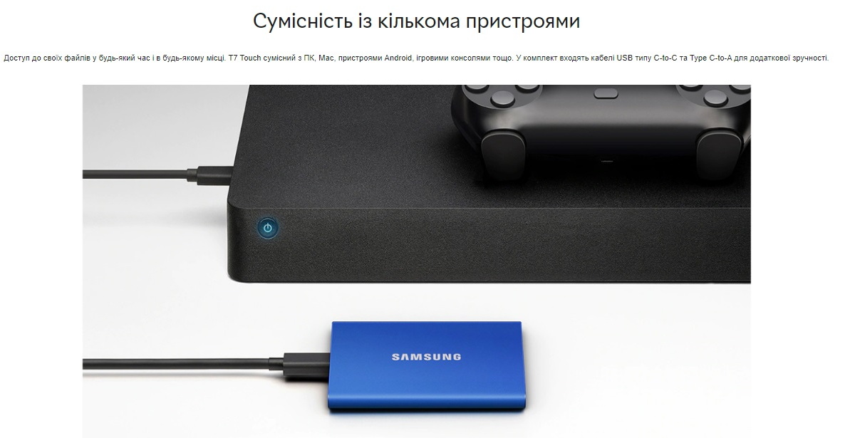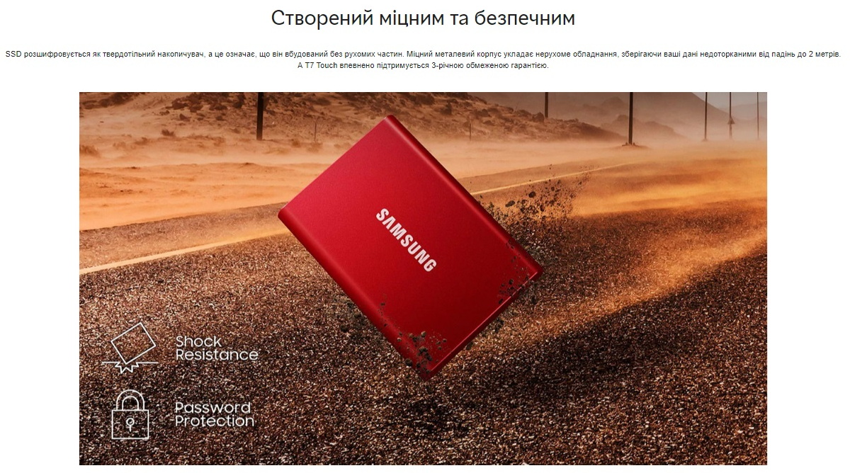 Зберігайте улюблені ігри, фільми або чутливі робочі файли, портативний SSD T7 Touch забезпечує швидкість та безпеку в корпусі розміром з долонь