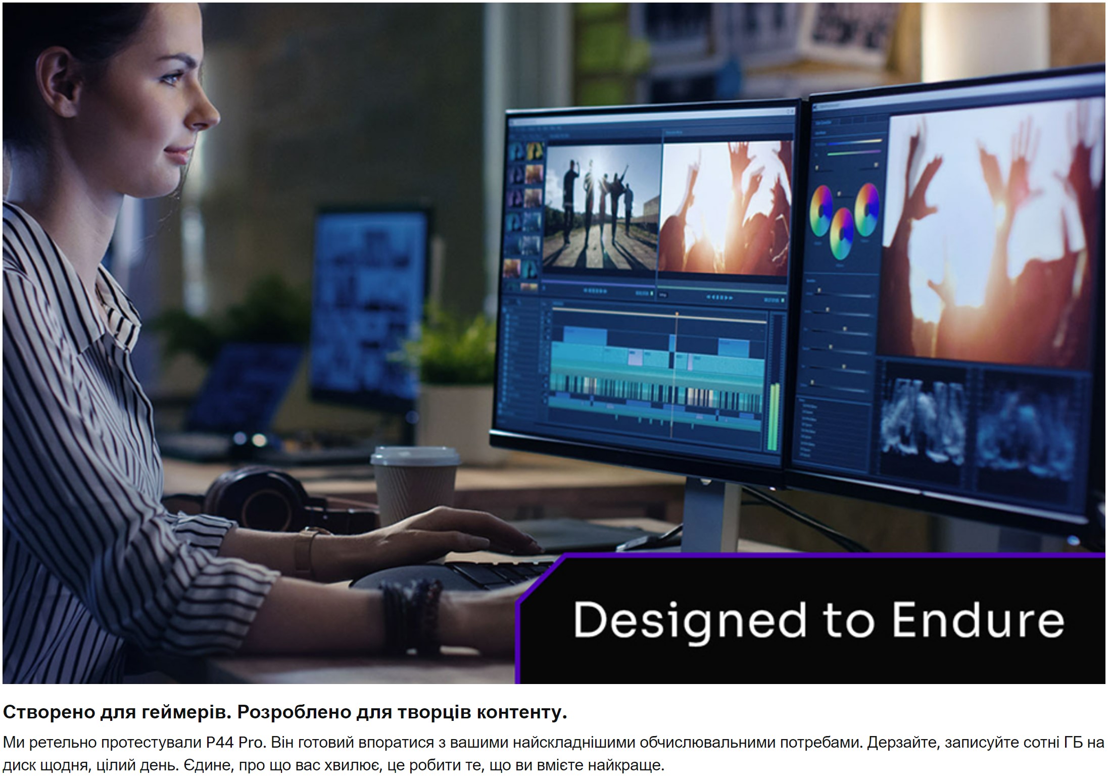 Ми ретельно протестували P44 Pro. Він готовий задовольнити ваші найвибагливіші обчислювальні потреби. Дерзайте, записуйте сотні ГБ на диск щодня, весь день. Все, про що ви турбуєтеся, це робити те, що у вас виходить найкраще.