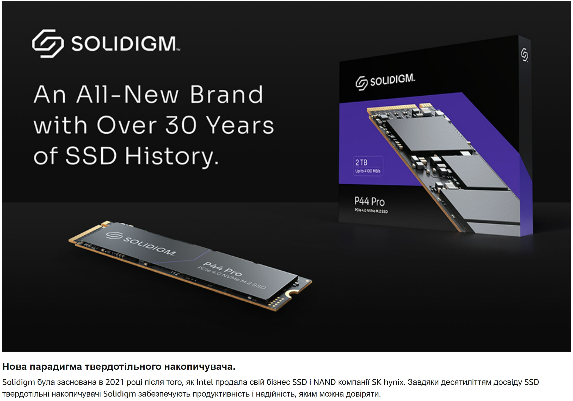 Solidigm була заснована у 2021 році після того, як Intel продала свій бізнес SSD та NAND компанії SK hynix. SSD-накопичувачі Solidigm, засновані на багаторічному досвіді роботи з твердотілими накопичувачами, забезпечують продуктивність та надійність, яким ви можете довіряти.
