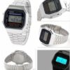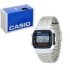 Casio A168WA зроблений в стильному дизайні, схожий на класичні та всім знайомі моделі Casio. Годинник оснащений електролюмінесцентною підсвіткою, що полегшує зчитування даних в темну пору доби. Скло циферблата акрилове, корпус пластиковий, браслет з нержавіючої сталі, зручна регульована застібка, дуже приємний та легкий у використанні годинник.