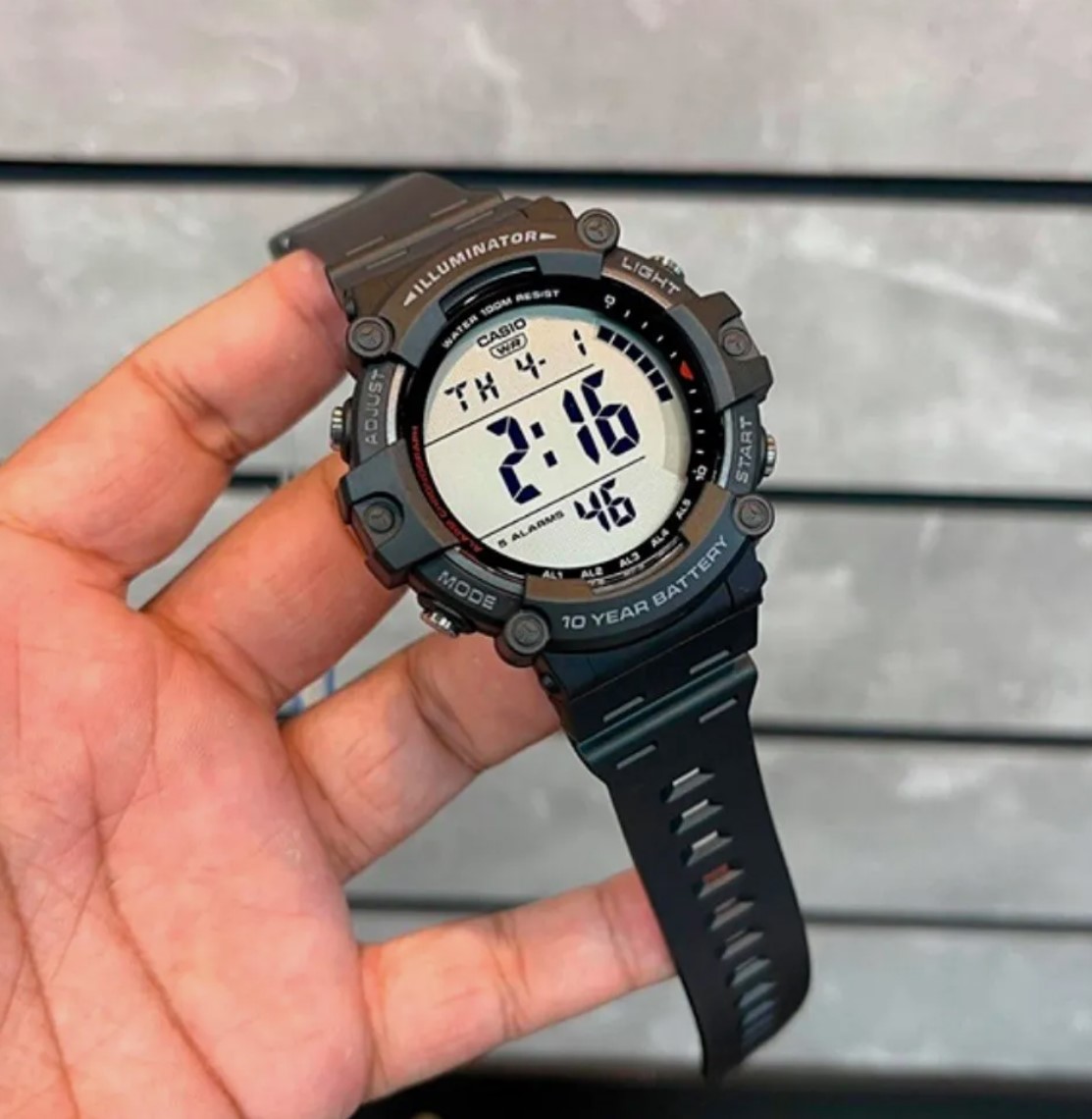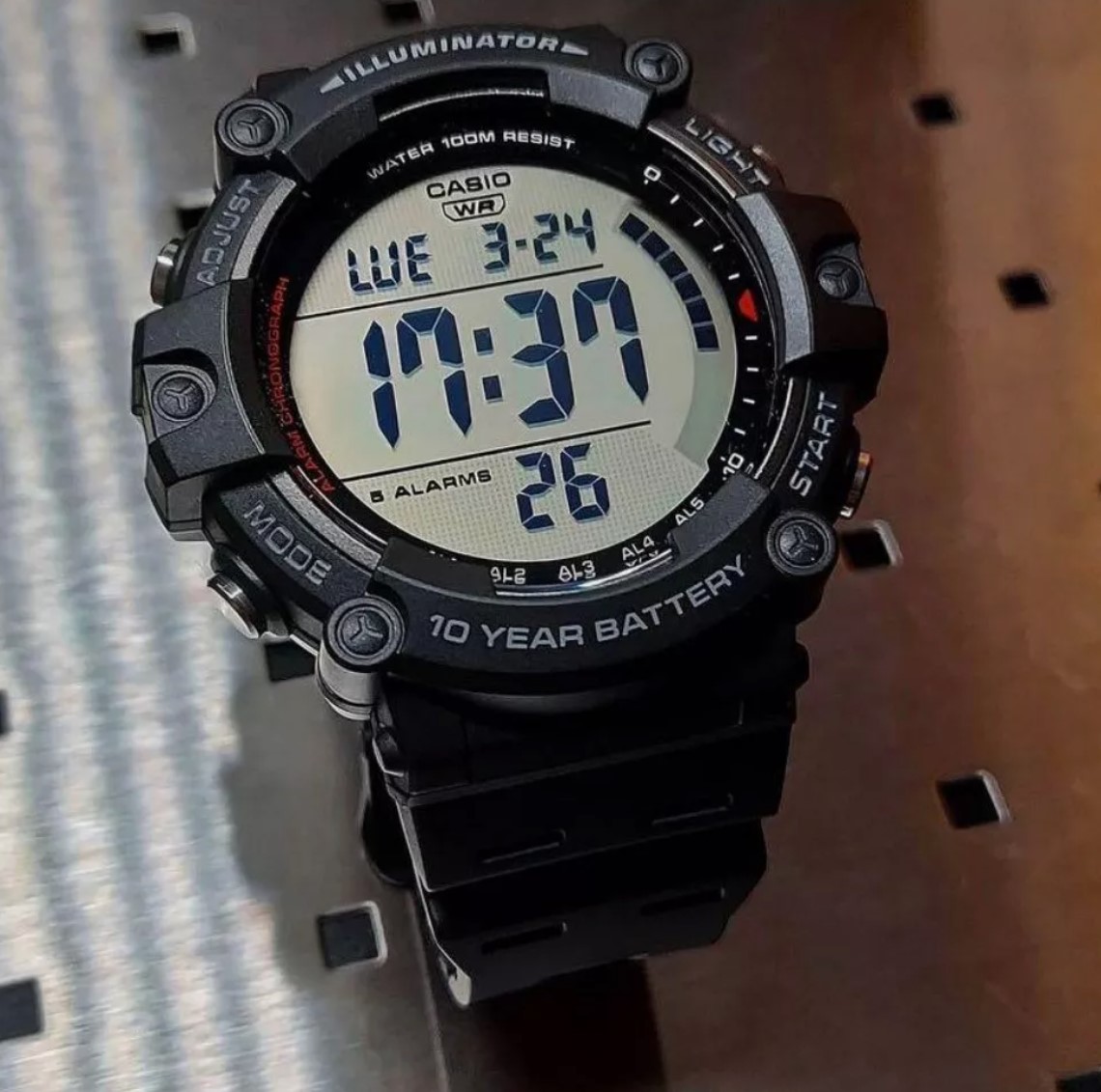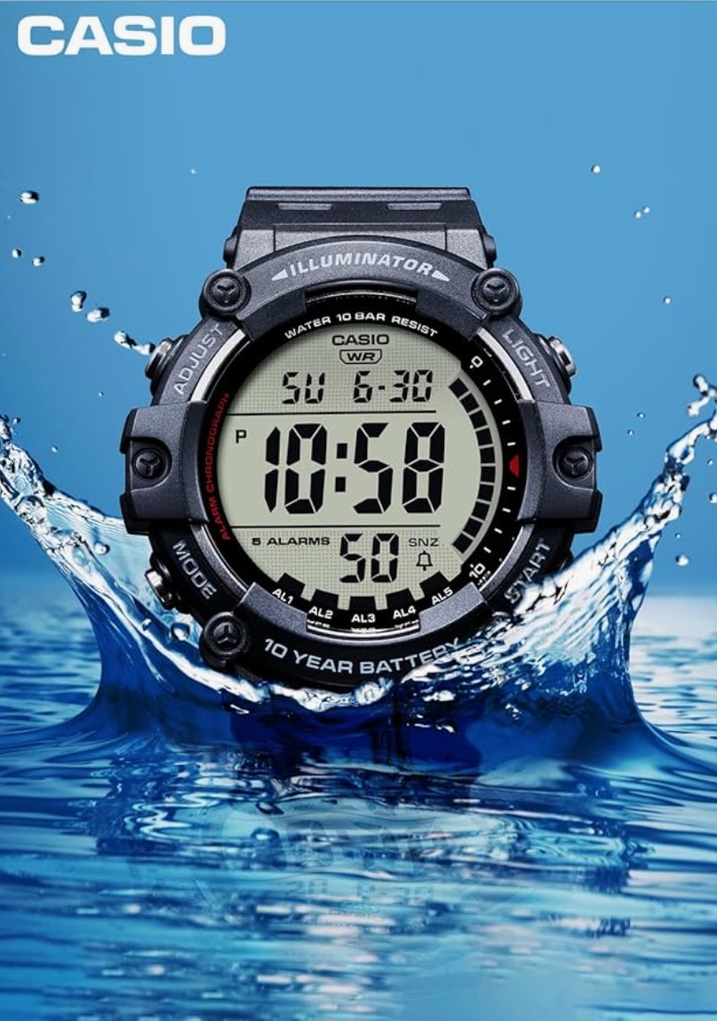 Міцний корпус зі смоли забезпечує захист від ударів і подряпин, а подовжений ремінець робить модель зручною навіть для великих зап’ясть або використання поверх одягу. Висока водостійкість дозволяє не знімати годинник під час плавання, тренувань чи подорожей, а повний набір цифрових функцій — секундомір, таймер, кілька будильників і LED-підсвітка — робить AE-1500WHX універсальним і практичним вибором на кожен день.