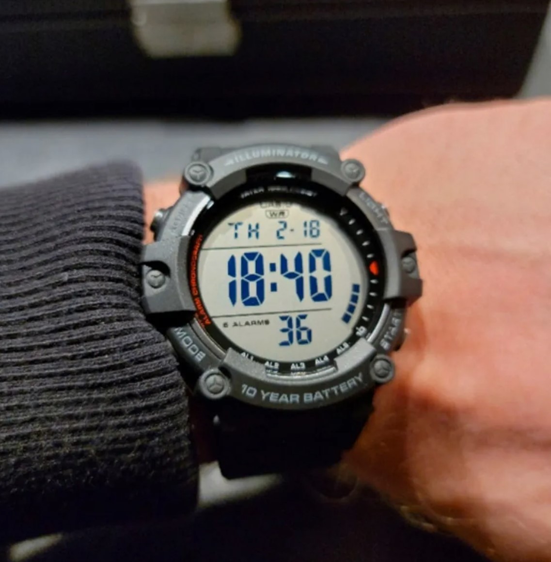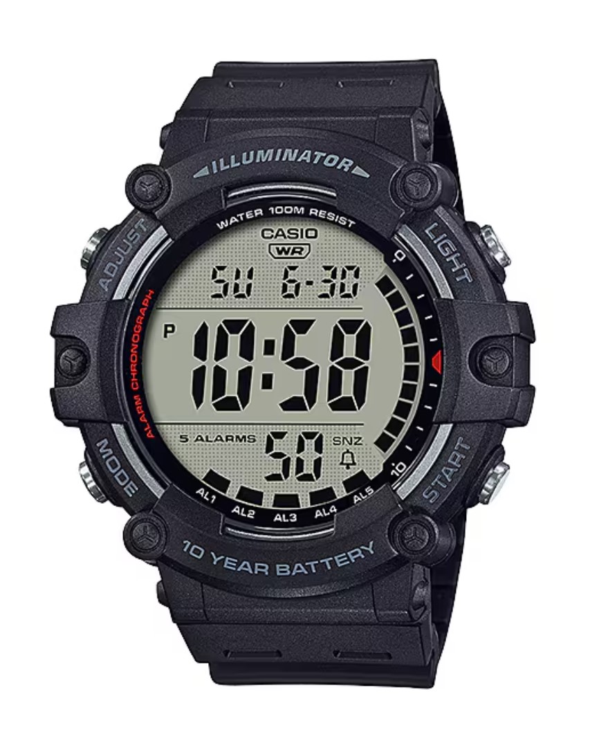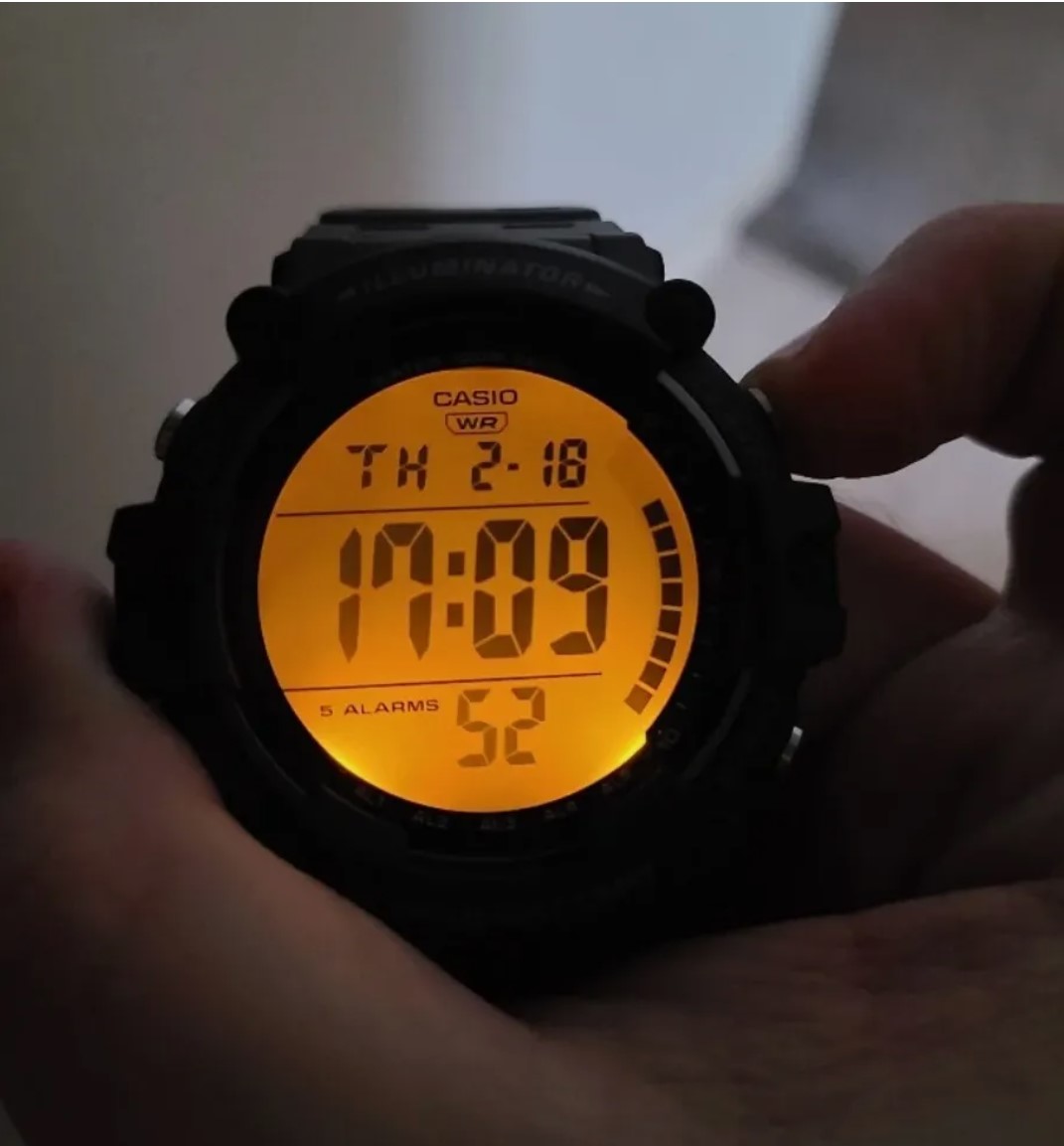 Міцний корпус зі смоли забезпечує захист від ударів і подряпин, а подовжений ремінець робить модель зручною навіть для великих зап’ясть або використання поверх одягу. Висока водостійкість дозволяє не знімати годинник під час плавання, тренувань чи подорожей, а повний набір цифрових функцій — секундомір, таймер, кілька будильників і LED-підсвітка — робить AE-1500WHX універсальним і практичним вибором на кожен день.
