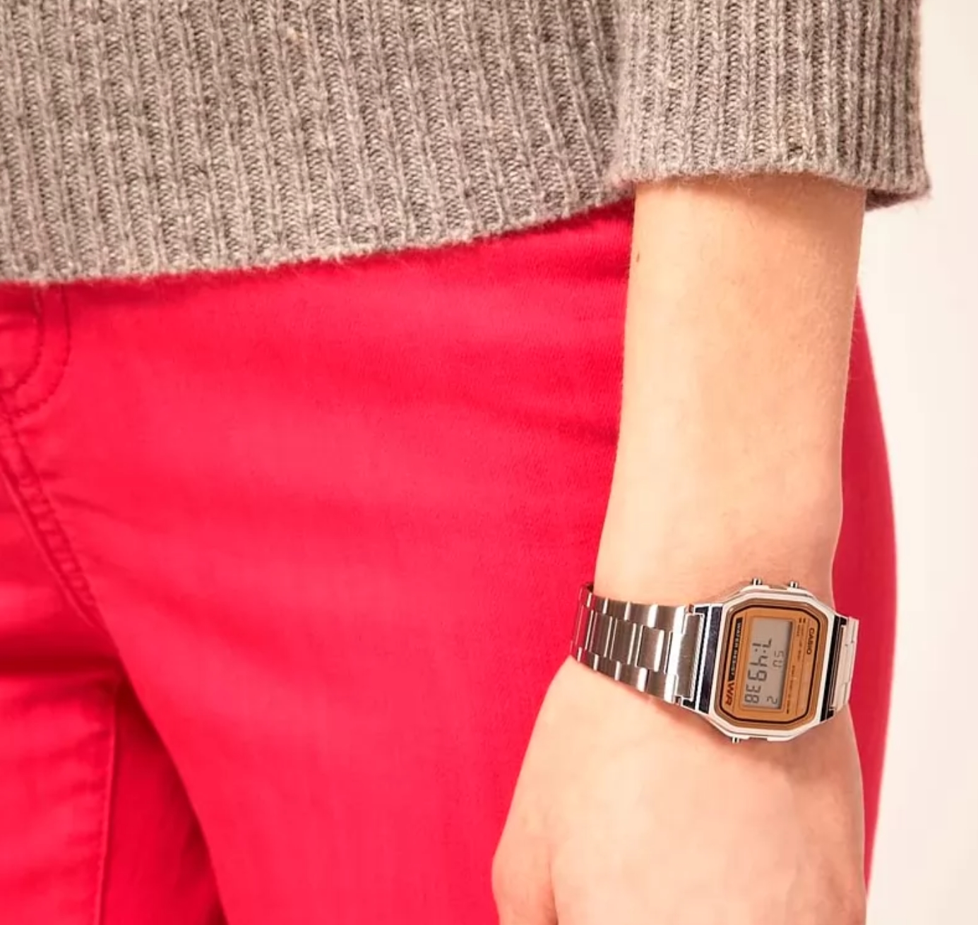 Модель оснащена акриловим склом, яке вирізняється легкістю та стійкістю до ударів. Корпус виготовлений із міцного полімерного пластику, що забезпечує довговічність і комфорт у носінні. Браслет з нержавіючої сталі не лише надійний, а й додає годиннику елегантного вигляду, а регульована застібка дозволяє легко підігнати його під зап’ястя.