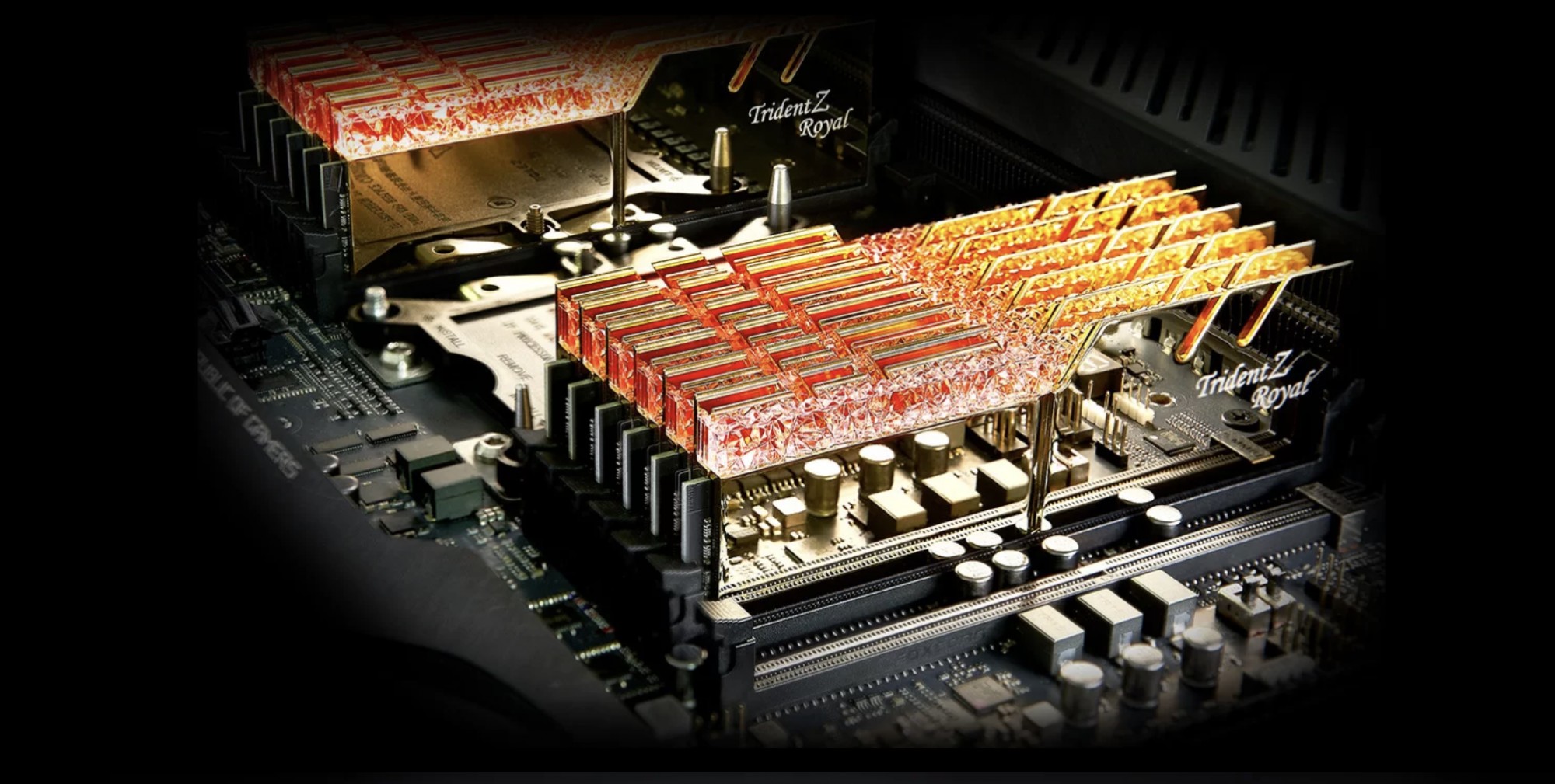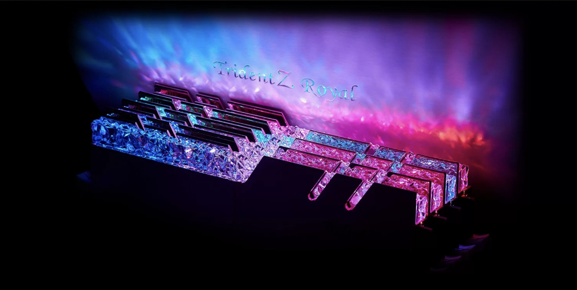Trident Z Royal є останнім доповненням до флагманського сімейства Trident Z та має дизайн коштовностей корони. Ретельно створений для відображення потрібної кількості заломлення світла, запатентована кристалічна світлова панель розсіює кольори RGB у чудовому дисплеї світлодіодного підсвічування. Відображаючи високоякісний дизайн світлової панелі, поліровані алюмінієві теплорозповсюджувачі золотих кольорів охолоджують модулі пам’яті.