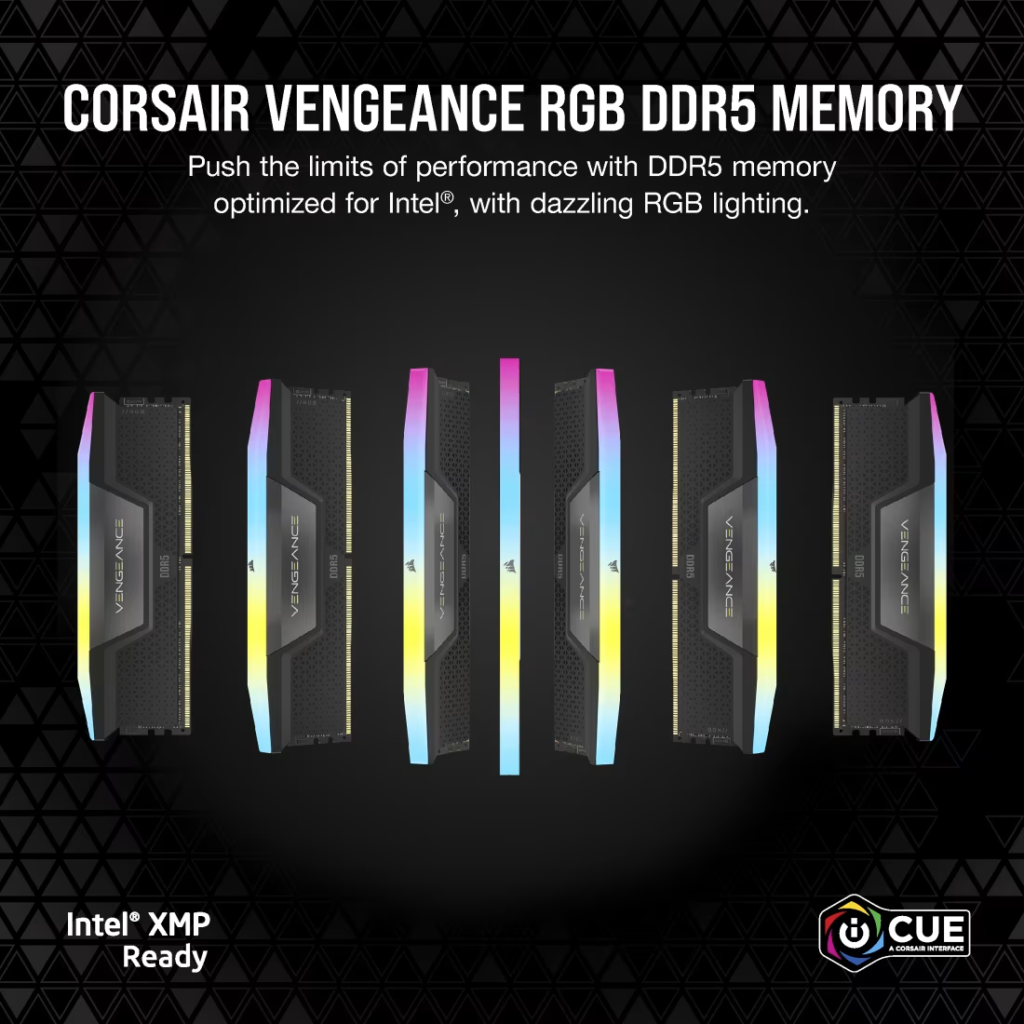 CORSAIR VENGEANCE RGB DDR5 – це поєднання високої швидкості, сучасного дизайну та розширених можливостей налаштування, яке ідеально підійде для потужних ігрових і робочих систем.
