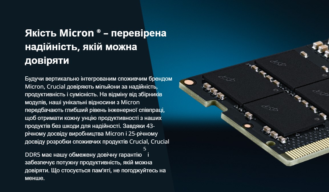 Будьте першим, хто залишив відгук для “Пам’ять для ноутбуків Crucial DDR5 64 GB (2x32GB) SO-DIMM 4800 MHz (CT2K32G48C40S5)”