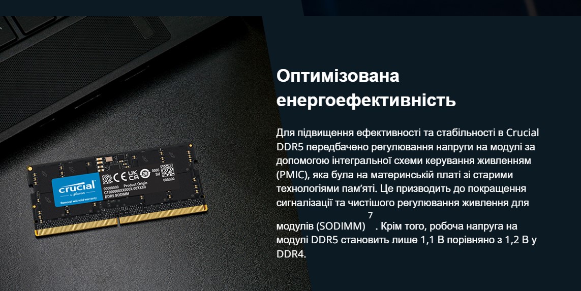 Пам’ять для ноутбуків Crucial DDR5 64 GB (2x32GB) SO-DIMM 4800 MHz (CT2K32G48C40S5)