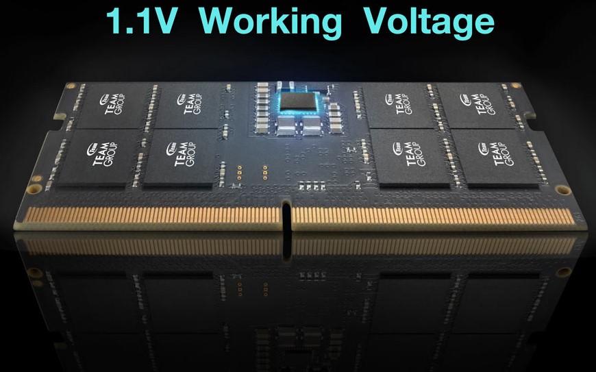 Робоча напруга зменшена з 1.2 В (у DDR4) до 1.1 В, що подовжує час автономної роботи ноутбуків. Крім того, PMIC (контролер управління живленням) перенесений з материнської плати безпосередньо на модуль пам’яті для кращого управління навантаженням і мінімізації шуму.