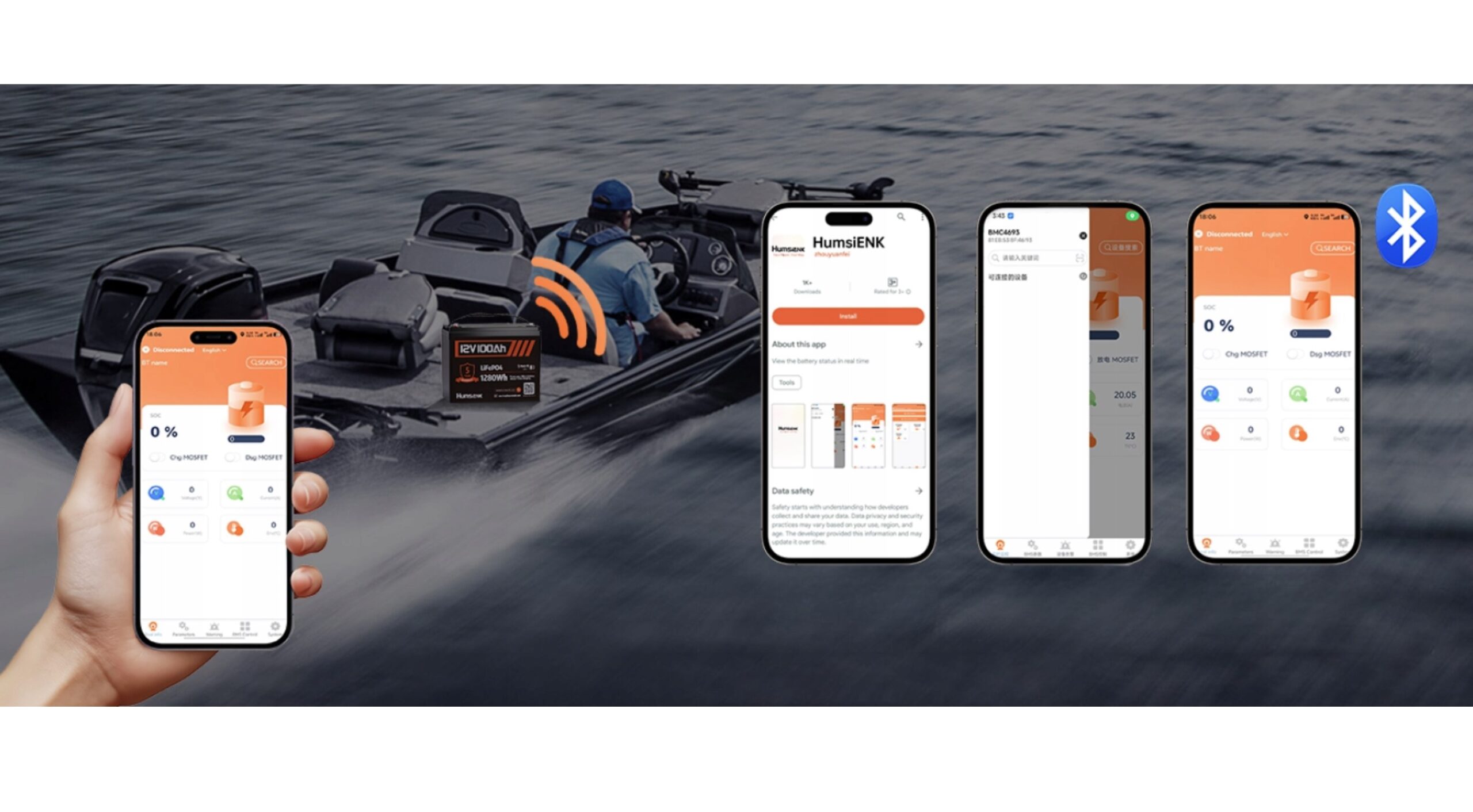 - Вбудований Bluetooth 5.0 — моніторинг через застосунок HumsiENK Smart BMS (iOS / Android).