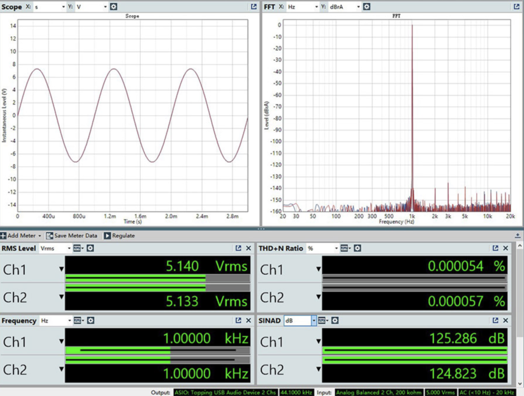 Завдяки продуманій схемі живлення з низьким рівнем шуму та високоточній аналоговій частині пристрій демонструє дуже низький рівень спотворень і шумів — приблизно THD+N до 0,00006%, що дозволяє відтворювати навіть найдрібніші нюанси музики.