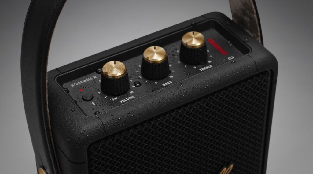 Колонка Stockwell II має ступінь захисту від води IPX4, тому вона здатна витримувати бризки води, коли погода починає змінюватися. Це ідеальна колонка, яку можна брати з собою, навіть коли зовні не найкращі погодні умови.