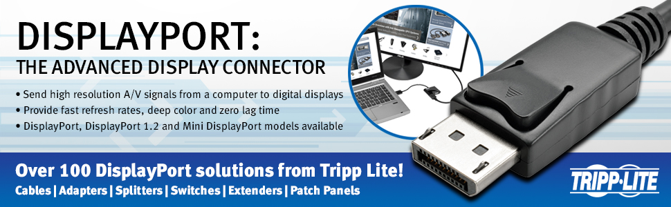 Кабель DisplayPort від Tripp®Lite використовується для цифрового інтерфейсу дисплея, розробленого Асоціацією стандартів відеоелектроніки (VESA). DisplayPort визначає цифрове аудіо/відео з’єднання, призначене для використання між комп’ютером і монітором або між комп’ютером і домашнім кінотеатром. Він підтримує як цифрові відео-, так і аудіосигнали і більше орієнтований на комп’ютерний ринок. Маючи максимальну пропускну здатність 10,8 Гбіт/с, цей кабель також підтримує DPCP (DisplayPort Content Protection), HDCP (High Definition Content Protection) і роздільну здатність до 1080p. Крім того, він має довжину 6 футів, що додає вам зручності.