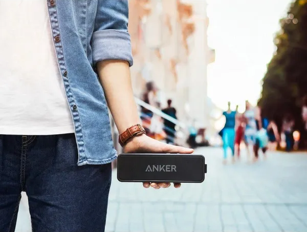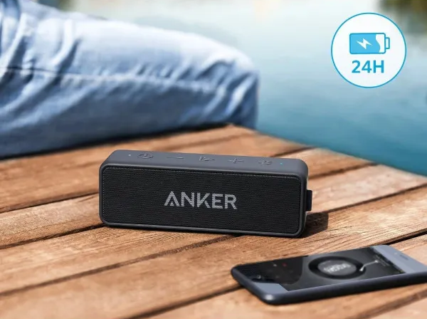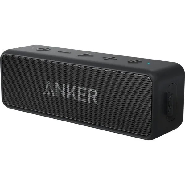 Модель підтримує Bluetooth та AUX-підключення, має вбудований мікрофон для гучного зв’язку, а також зручні тактильні кнопки керування на верхній панелі. Вага всього 414 г та компактні розміри 138 × 47 × 56 мм роблять Anker SoundCore 2 ідеальним супутником у подорожах, на природі чи під час тренувань.