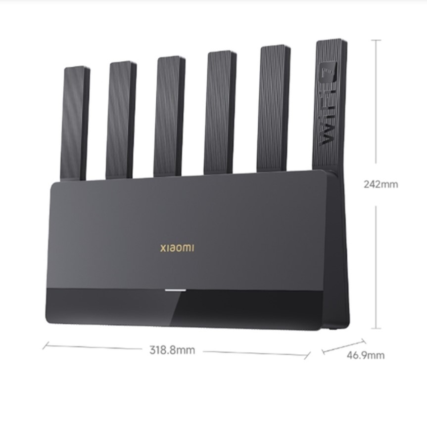 Роутер має стильний чорний корпус із агресивними лініями та компактними розмірами (318,8 x 46,9 x 242 мм), що дозволяє йому органічно вписатися в будь-який інтер’єр. Завдяки пасивній системі охолодження пристрій працює безшумно, а якісні матеріали забезпечують довговічність експлуатації.